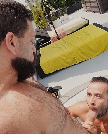Bigdicksman Robear Woods is on the Sky Deck and ready to fuck Franco's hot bubble butt. We are going to the pool later because its hot out BUT we pregame with some cock sucking and a good ass pounding. its Hot and Hotter out so lets CUM and go hit the pools on Sunset Blvd.